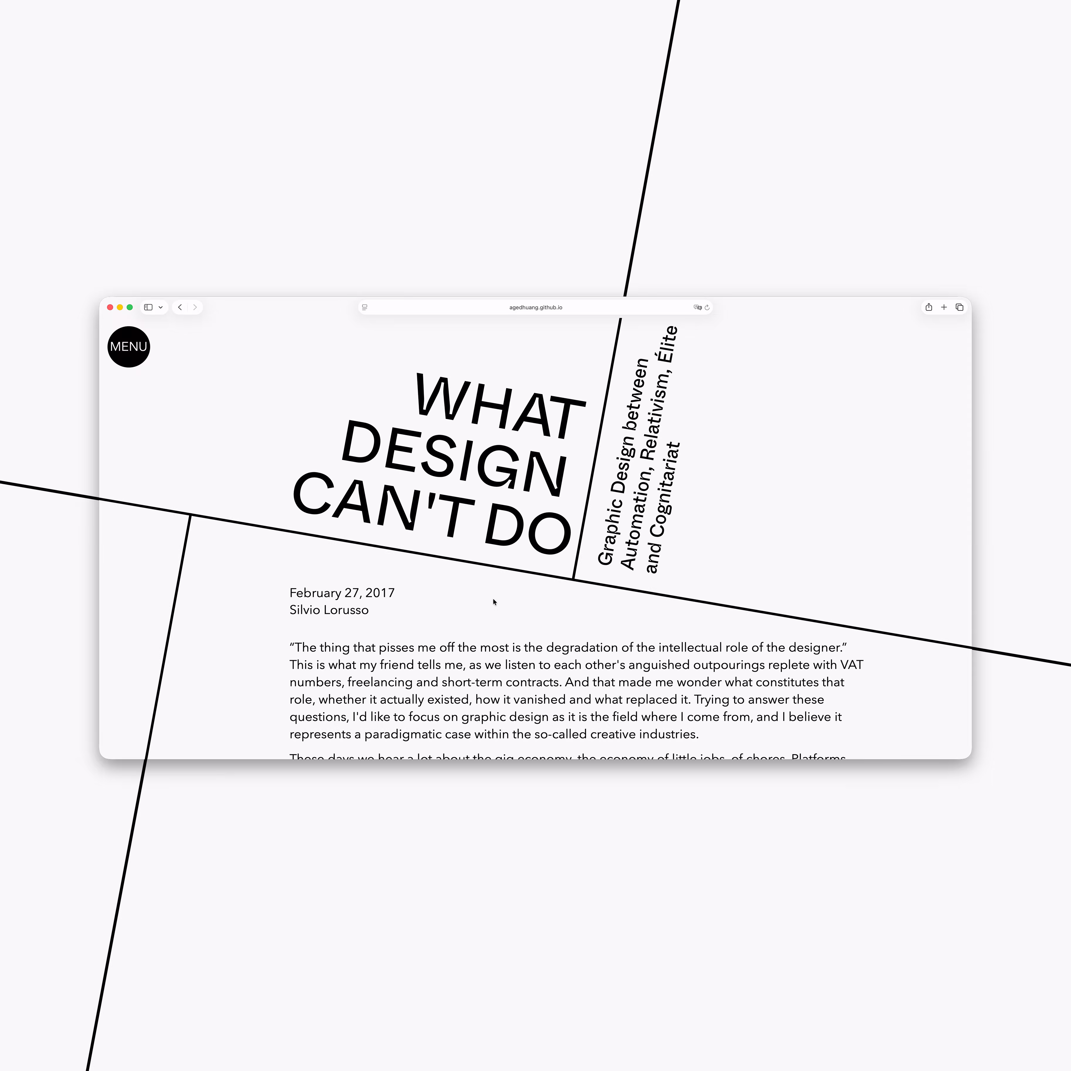 A responsive web experiment challenging design automation by replacing the standard grid with a diagonal layout.